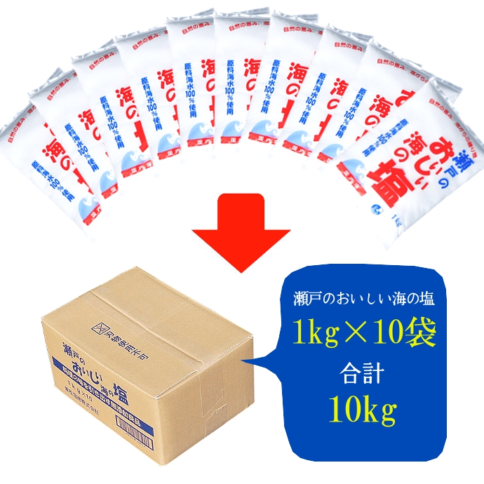 瀬戸のおいしい海の塩 1kg×10袋 / 国産 岡山県産 粗塩 海水塩 塩 漬物 梅干し 味噌 送料無料