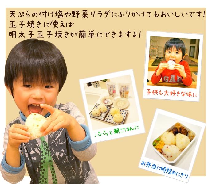 | 原産地 | 食塩(長崎県) フリーズドライ辛子明太子(日本・アラスカ他) |