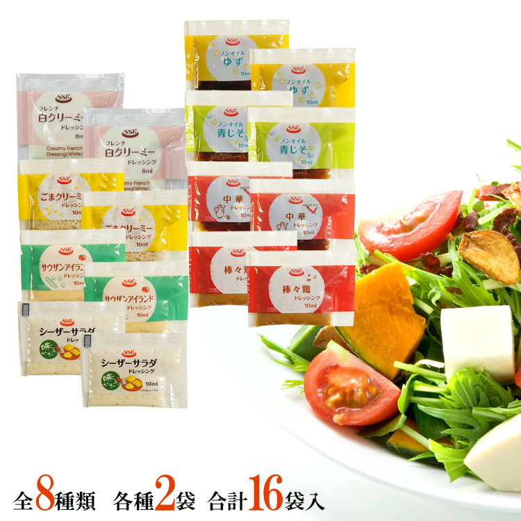 《お試し16袋入》10ml小袋ドレッシングアソート 8種類×2袋(16袋入) / メール便 送料無料