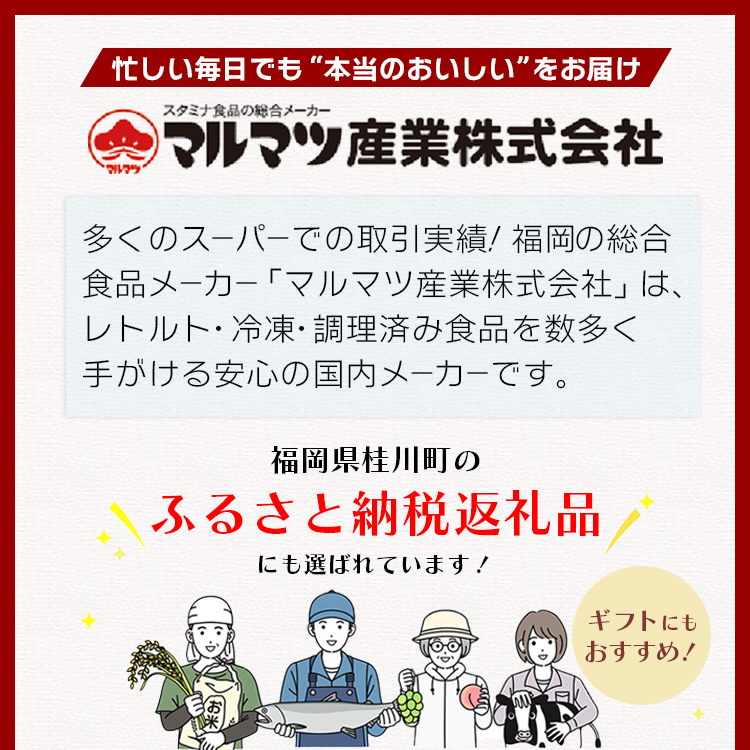 アレルギー物質 | 小麦・牛肉・大豆 ※当工場では、小麦、そば、卵、乳成分、落花生、えび、かにを含む製品を製造しています。 |
