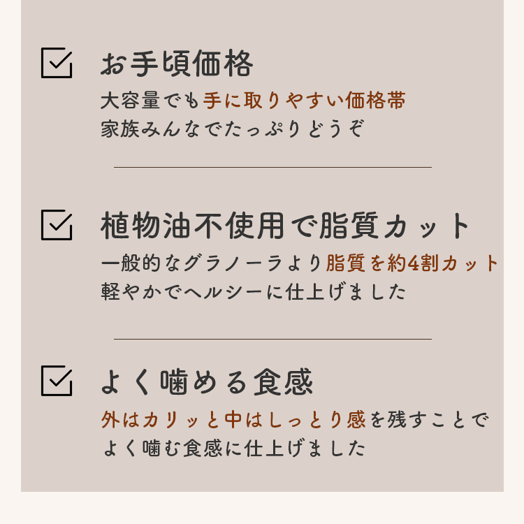 原材料 | オーツ麦(73.5%)、イソマルトオリゴ糖 (20%)、 麦芽エキス(4.5%)、糖蜜(2%) |