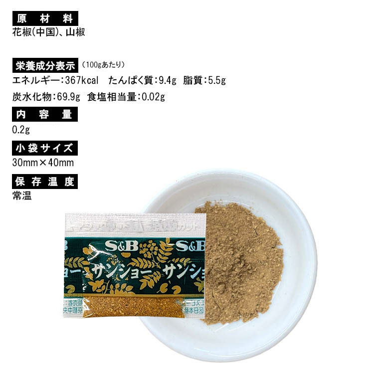 S&B 山椒の粉(花椒と山椒ミックス) 0.2g×1000 / 宅配便 送料無料