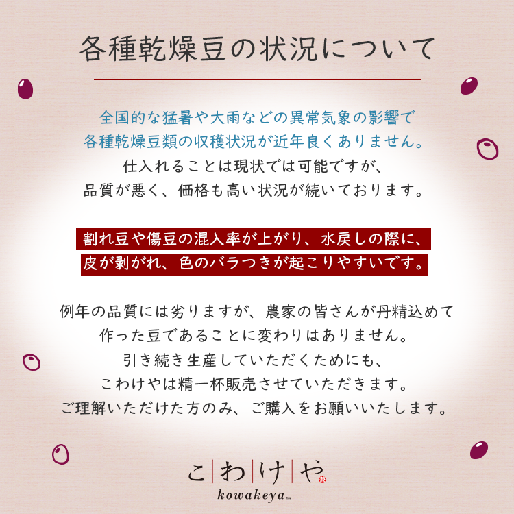 | アレルギー | 当工場では、小麦、そば、卵、乳成分、落花生、えび、かにを含む製品を製造しています。 |