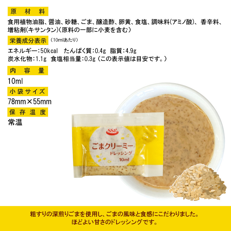 SSK ごまクリーミードレッシング 10ml×200袋 / ドレッシング ごま 煎りごま サラダ お弁当 小袋 送料無料