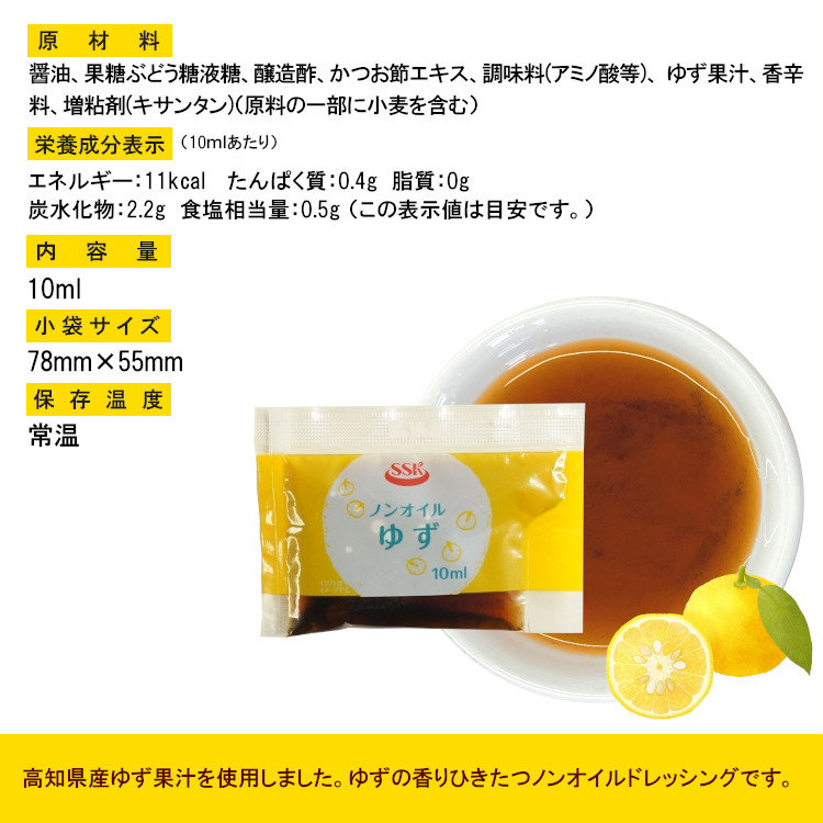 SSK ノンオイルゆずドレッシング 10ml×400袋 / ドレッシング ノンオイル ゆず サラダ お弁当 小袋 送料無料