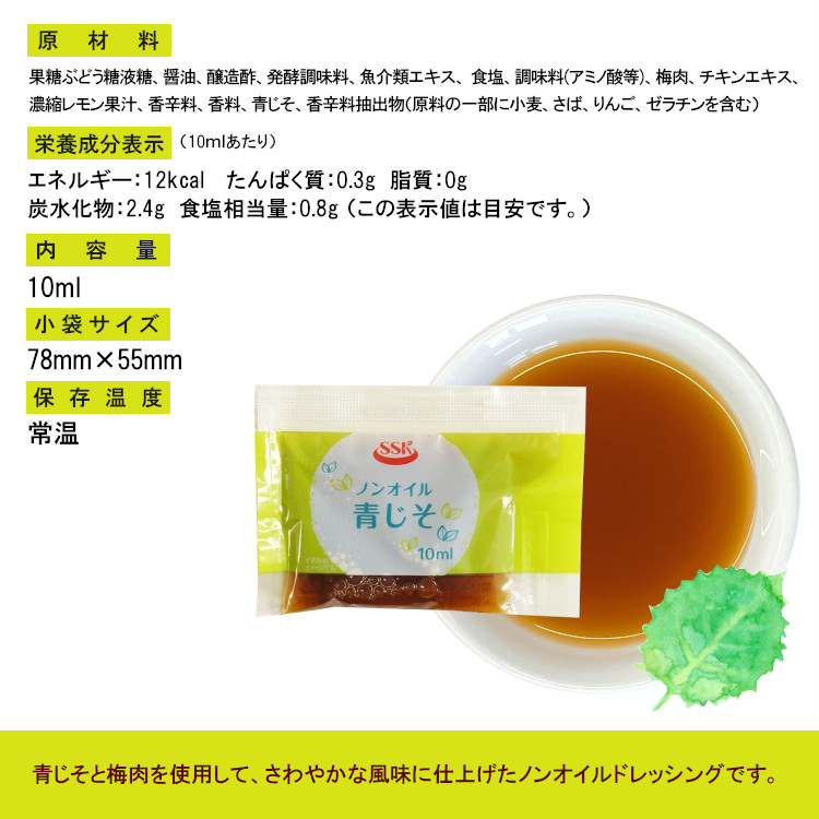 SSK ノンオイル青じそドレッシング 10ml×400袋 / ドレッシング ノンオイル 青しそ サラダ お弁当 小袋 送料無料