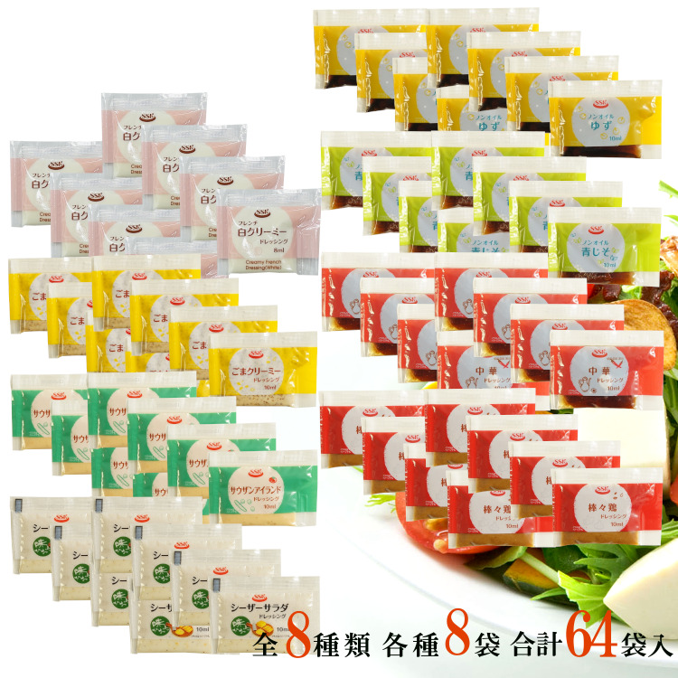 SSK 10ml小袋ドレッシングアソート 8種類×8袋(64袋入) / ドレッシング 個包装 使い切り お弁当 アウトドア 送料無料